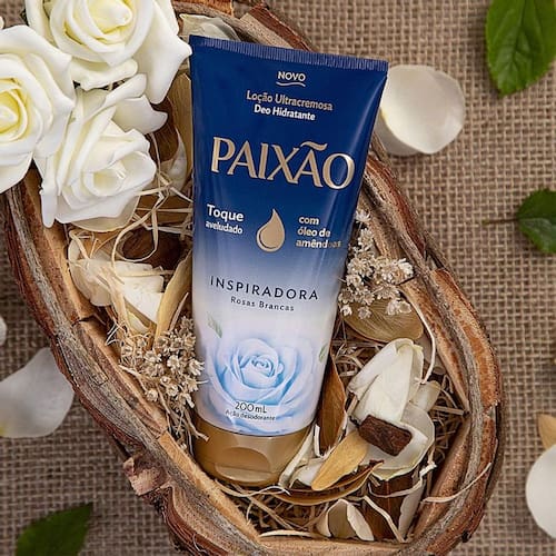 A Loção Hidratante Paixão Ultra Inspiradora Rosas Brancas é um produto indicado para todos os tipos de pele. Contêm em sua fórmula o óleo de amêndoas garantindo hidratação para a pele por até 24 horas. Possui rápida absorção deixando a pele macia e com toque aveludado. E além disso sua fragrância tem notas de lavanda, alecrim e bergamota deixando a pele intensamente perfumada. É recomendado para uso diário.