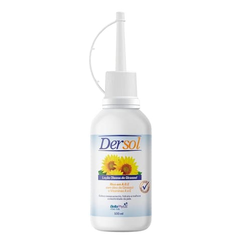 Loção Oleosa De Girassol Dersol A.G.E 100ml Rico em A.G.E com óleo de Girassol e Vitaminas A e E. Evita o ressecamento, hidrata e melhora a elasticidade da epele.
