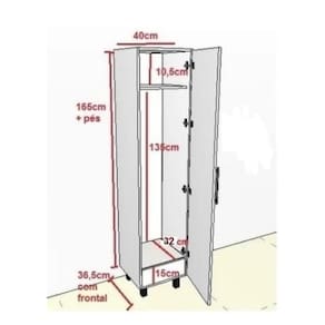 *Armário com chave;*Móveis resistente à agua através da tecnologia de colagem PUR; *Nossos produtos não são produzidos em série, são frutos da marcenaria moderna feitos um a um por profissionais experientes e com tecnologia de ponta;*Não produzimos móveis em pintura, aglomerado ou MDP, *Produzido 100% em MDF com laminado BP;*Dobradiças com amortecimento;*Porta com chave;*Medidas*Largura: 40 cm; *Altura: 165 cm + 10 cm pé; *Profundidade: 36,5 cm; *Espessura: 1,5 cm;*Peso: 43 Kg;*Alta durabilidade;*Fácil limpeza;*Acompanha buchas, parafusos e suportes para montagem;*Enviado desmontado com instruções de montagem;*Embalagem resistente;