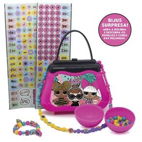 Bolsinha fashion biju da lol surprise é ideal para meninas acima de 3 anos. Bolsinha da lol que acompanha mais de 150 peças para criar bijus personalizadas customize a bolsinha montando a alça e colando os adesivos abra a bolinha e descubra os modelos e cores das miçangas. Crie pulseira e colar, use e abuse de todas as peças