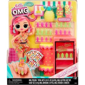 Descubra as surpresas mais doces com LOL Surprise OMG Sweet Nails - Pinky Pops Fruit, incluindo um frigobar para bebidas com balcão de loja, acessórios de unhas exclusivos e a nova e vibrante personagem Pinky Pops, com roupas coloridas inspiradas em frutas e lindos cabelos cacheados rosa brilhanteAjude a administrar a saborosa loja de frutas com Pinky Pops e abra surpresas incríveis lá dentro, onde você pode fer seus próprios picolés de frutas e servir smoothies de frutas Primeiro, abra a minigeladeira e revele 24 unhas neon que parecem picolés de frutas e podem ser colocadas nas suas próprias unhas e decoradas Observe atentamente as unhas para explorar detalhes fofos com tema de frutas, incluindo morangos, fatias de limão e muito maisEntão, descubra 2 smoothies de frutas extremamente divertidos; abra os frascos e revele duas cores de esmaltes da moda para aplicar nas unhas Confira o adorável pote de doces em formato de abacaxi; em seguida, abra para revelar o VERDADEIRO brilho das unhas Agora você está pronto para ser criativo e personalizar suas próprias unhas - descasque e pressione os adesivos de unha, pressione um conjunto de unhas, use a lixa de unha para modelá-las, depois pinte-as e finalize seus designs com glitter glamoroso e frutado adesivos para uma diversão mais doce e estilosaAo desenhar suas unhas, não se esqueça de colocar os dedos nas ranhuras na parte superior da estação de unhas para maior estabilidade A geladeira também serve como de unhas para guardar e exibir suas deliciosas guloseimas de frutas quando terminarColete todas as 3 lojas exclusivas Sweet Nails: Kitty K Café, Pinky Pops Fruit Shop e Candylicious Sprinkles Shop e crie dezenas de designsHomologação Inmetro: CE-BRI/ICEPEX-N 01264-25-14