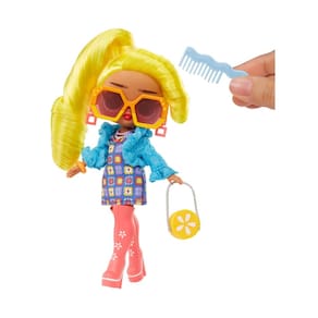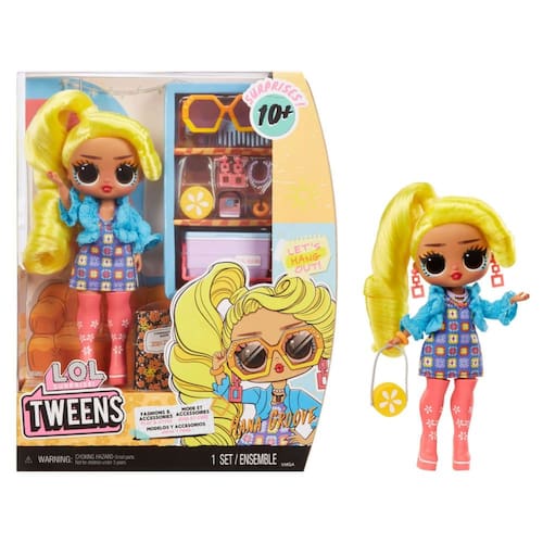 Hana Groove é uma doll da série LOL Surprise Tweens, perfeita para quem ama o estilo retrô Ela vem envolta em mais de 10 surpresas, como vestido de crochê dos anos 70, botas rosas até o joelho, jaqueta cropped com babados, bolsa floral, óculos de sol, brincos, pulseira, colares, um cooler e uma câmera polaroid — tudo pensado para festas ao ar livre e piqueniques Seu corpo articulado permite várias poses, complementando sua personalidade vibrante e cheia de atitude, pronta para curtir o dia ensolarado ao lado das amigas Ela faz parte de uma coleção divertida que inclui também Flora Moon, Ellie Fly e Cassie Cool