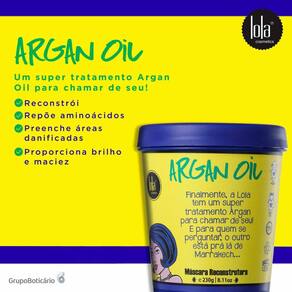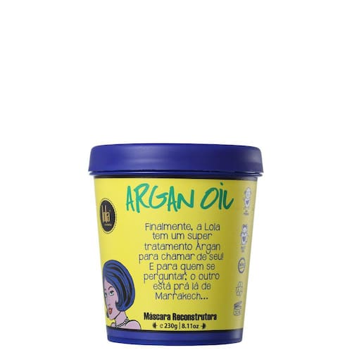 Máscara Capilar Lola Cosmetics Argan Oil ajuda a preencher as áreas danificadas da cutícula do cabelo enquanto o óleo de Argan, presente em sua fórmula, finaliza o processo de reconstrução. É liberada para as técnicas de Low e No Poo e ainda restaura e protege a fibra capilar, reduz o frizz e dá brilho.