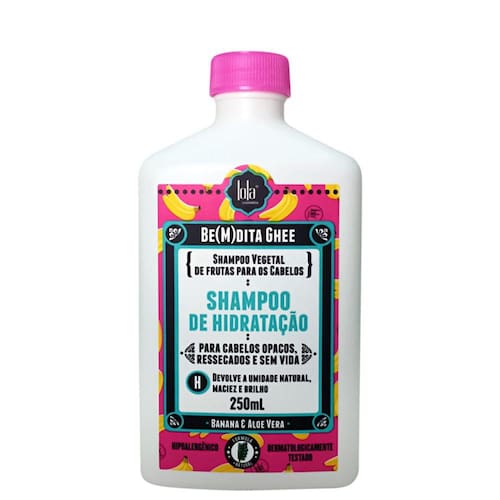O Shampoo de Hidratação Lola Cosmetics Be(M)dita Ghee Banana & Aloe Vera repõe a umidade natural dos fios ressecados e garante maciez, brilho e flexibilidade durante o dia a dia.