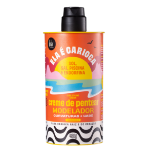 Creme de pentear para cabelos cacheados com curvaturas 4ABC. Lola Cosmetics Ela é Carioca Sol, Sal, Piscina & Endorfina desembaraça e modela os fios.