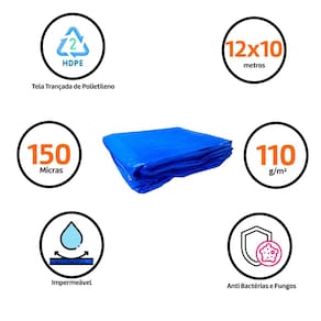 A Lona é produzida com tecido trançado de polietileno; possui ilhoses metálicos em cada canto e ao redor da bainha a cada 1 metro. O material é versátil, altamente resistente e pesa 110g/m2.