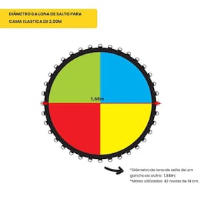 - As molas utilizadas nesta lona para cama elástica de 2,00m são de 14 cm;