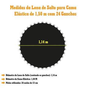Aqui na Guadaim você encontra o tamanho ideal para o seu equipamento. A lona para cama elástica de 1,50 m possui espaços para 24 molas. A lona de salto preta para cama elástica é ideal para ficar em espaços ao ar livre. Por ser preta, não deixa a sujeira visível e é fácil de limpar.