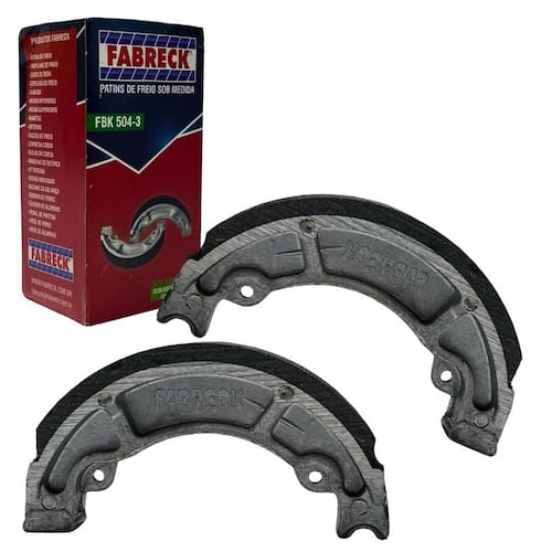 - ESPECIFICAÇÕES Produto: Patim de Freio / Lona de Freio Marca: Fabreck Material: Compostos orgânicos Aplicação: Freio a tambor Condição: Novo Conteúdo da embalagem: 01 Par de Patim de Freio