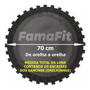 Lona Tela Jump 30 Molas - Profissional Medidas: 69 a 73 cm de orelha a orelha aproximadamente medida contando os ganchos de encaixe dos bigodes - 15 costuras reforçadas - beiral duplo - 2 lados da lona - ótimo acabamento - ótima durabilidade - profissional academia Especificações técnicas - material da lona: sanet emborrachado 2000 fios - material do beiral: fita cbr reforçada - medida do beiral da lona duplo : 5 cm - material das orelhinhas: fita ca reforçada - comprimento das orelhinhas: 1 a 3 cm - peso da lona unidade : 390 gramas Cor: preta Ean: 7892469431395
