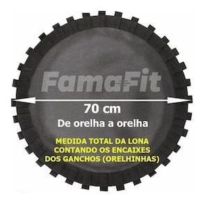 Lona Tela Jump 30 Molas - Profissional Medidas: 69 a 73 cm de orelha a orelha aproximadamente medida contando os ganchos de encaixe dos bigodes - 15 costuras reforçadas - beiral duplo - 2 lados da lona - ótimo acabamento - ótima durabilidade - profissional academia Especificações técnicas - material da lona: sanet emborrachado 2000 fios - material do beiral: fita cbr reforçada - medida do beiral da lona duplo : 5 cm - material das orelhinhas: fita ca reforçada - comprimento das orelhinhas: 1 a 3 cm - peso da lona unidade : 390 gramas Cor: preta Ean: 7892469431395