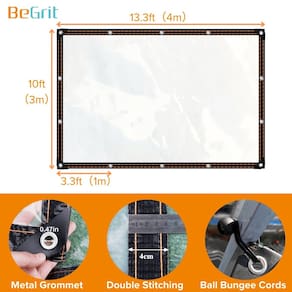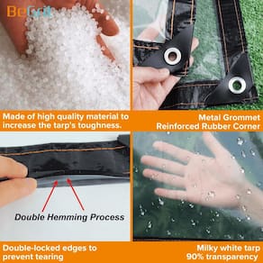 Procurando uma lona transparente para suas plantas/estufa? Procurando por uma lona transparente para sua gaiola de animal de estimação? Procurando por uma lona transparente para sua piscina pervenir neve, folhas, etc? A capa de lona transparente impermeável da BeGrit pode ajudá-lo! É perfeito para cobertura, galpão de plantas, cobertura, tenda, cortina, lona de varanda, capa de carro, almofada de umidade, etc. Características: Polipropileno resistente, durabilidade e resistência a rasgos. Esta lona é transparente, impermeável, à prova de vento e à prova de poeira, torna sua estufa quente, protege suas plantas. Aplicável para alojamento de gado, edifícios de aves, estufas, estruturas de aro, celeiros, canis e muito mais. - O pacote inclui: Você receberá 1 peça de lona transparente resistente, seu tamanho é de cerca de 3 x 4 m, vem com 14 cabos elásticos esféricos. - Conveniente para armazenar: a lona de plástico transparente pode ser dobrada e dobrada à vontade e ocupa apenas um pequeno espaço quando não estiver em uso, então não há necessidade de se preocupar com problemas de armazenamento. - Design transparente: 90% transparente, adotando material impermeável transparente, para que você possa conhecer o conteúdo interno sem abrir a lona, nossas lonas transparentes são as cortinas externas perfeitas para manter tudo à vista. Perfeito para pátios, varandas, gazebos. - Isolamento e umidificação: mantém os elementos externos e o interior aquecidos, protegendo seu galinheiro no inverno e também atua como uma estufa para proteger as plantas no inverno, pode evitar que as plantas de jardim congelem. - Múltiplas funções: Ótimo para cobrir carros, trailers, barcos, abrigos, madeira, móveis e piscinas de jardim. Também adequado para uso doméstico e profissional, por ex. durante obras de construção e renovação. - Na BeGrit, mantemos nosso compromisso com a qualidade e atendimento ao cliente excepcional. Se você tiver alguma dúvida ou preocupação, e resolveremos isso dentro de 24 horas!