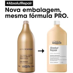 Shampoo para cabelos danificados. L'oréal Professionnel Serie Expert Absolut Repair Gold Quinoa + Protein Instant Resurfacing Shampoo reestrutura a fibra capilar, confere brilho e leveza durante a limpeza diária dos fios. O Shampoo Absolut Repair Gold Quinoa + Protein L'Oréal Professionnel traz ativos que ajudam restaurar a superfície dos fios para que o cabelo revele uma aparência mais saudável. Seu visual ganha muito mais brilho e um toque macio incrível. Ação Gino Quinoa e proteínas: reduz os danos na superfície do cabelo para fios mais brilhantes e com toque leve. Conselho de Aplicação Aplique o shampoo sobre o cabelo molhado e massageie com suavidade. Enxágue e, se necessário, repita o processo. Lembre-se se sempre colocar o shampoo na mão, e esfregá-lo nas suas palmas antes de passar no couro cabeludo. Isso evita com que o produto fique concentrado em apenas uma região do cabeludo. Resultado Seu cabelo fica limpo, até 77% mais reparado, 7x mais brilhante e com toque suave com o uso da linha completa . Marca: Não Informado Ean: 7899671100156