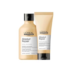 O kit L'Oréal Professionnel Absolut Repair Protein + Gold Quinoa atua na reparação da fibra capilar extremamente fragilizada para que o cabelo revele uma aparência mais saudável. Seu visual ganha muito mais brilho e um toque macio incrível.