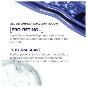 O Gel de Limpeza L'Oréal Paris Revitalift Pro Retinol possui ação suavizante, que melhora a textura, e um alto poder de higienização, que elimina impurezas e uniformizando a face sem ressecar. Produto livre de Parabenos e totalmente cruelty free.