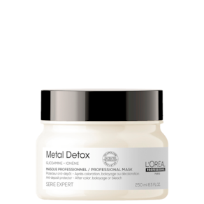 Máscara capilar para cabelos coloridos e danificados. L'Oréal Professionnel Metal Detox é a primeira máscara protetora anti-depósito que protege o cabelo do depósito de partículas de metal*.