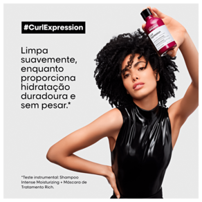 A Shampoo L'Oréal Professionnel Serie Expert Curl Expression Intense Moisturizing garante hidratação de longa duração sem pesar, os cabelos ficam fáceis de desembaraçar e preparados para receber a máscara de tratamento. Sua fórmula conta com Glicerina 3% e Urea H que que auxiliam na retenção de hidratação nos cabelos, e Semente de Hibisco, uma fonte de aminoácidos e vitaminas que irão revitalizar e proteger os fios.