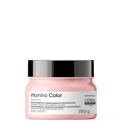 A Máscara L'Oréal Professionnel Serie Expert Vitamino Color tem como principal ingrediente, o Resveratrol, um poderoso antioxidante presente na casca e nas sementes das uvas, que tem a função de preservar a cor dos cabelos por mais tempo. O resultado é um cabelo com 8 semanas de proteção da cor e 7x mais luminosidade.