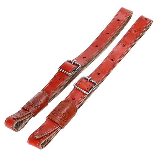 Par de loros A Pantaneira, fabricados em Couro nobre na cor vermelha com costuras reforçadas e fita de nylon, passador de couro e Fivela de metal.