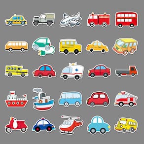 Lote de adesivos: 50 peças de transporte, carros, barcos, aviões