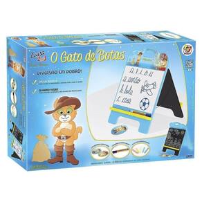Lousa O Gato de Botas em madeira Mdf com pintura atóxica, montada e pronta para brincar. Lousa branca para escrever/desenhar com marcador de quadro branco. Quadro negro para escrever/desenhar com giz escolar.