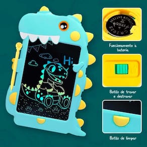 Lousa Educativa - Quadro LCD - Dino Verde - DM Toys: desenhar e fazer atividades fica mais divertido com o Quadro LCD Dino da DM Toys! As crianças podem desenhar de um jeito completamente diferente e se tornarem verdadeiros artistas e quando terminarem suas obras, basta apertar o botão de apagar, para começar novos desenhos. Detalhes: • O quadro LCD é perfeito para anotar recados, lembretes, fazer diversas anotações • Tem botão de bloqueio para não apagar o que foi escrito • Acompanha caneta e porta-caneta para você guardar e utilizar quando quiser • Funciona à bateria Informações: • Produto: Quadro LCD tela 20,5 cm Dino • Marca: DM Toys • Tipo: Quadro LCD para Atividades • Categoria: Artes e Atividades • Tamanho: 20.5 cm • Conteúdo: - 01 quadro LCD - 01 caneta para quadro LCD • Recomendação: para crianças a partir de 03 anos de idade Especificações: • Referência: DMT6722 • Código de Barras: 7899205967224 • Embalagem (C x A x L): 21 x 29 x 1.5 cm • Embalagem (Peso): 0.198 kg • Composição / Material: Plástico PS, PET • Alimentação: utiliza 01 bateria “CR2025” (incluída) • Registro: 006 249/2023 • Certificado: Órgãos Autorizados - OCP´S (Organismos de Certificação de Produtos) Aviso: • As imagens são meramente ilustrativas • Os pesos, tamanhos e medidas são aproximados • As cores e estampas dos produtos podem ter variações • As informações são de responsabilidade do fabricante ou fornecedor