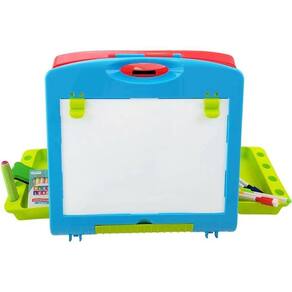 Versátil, ela se transforma em lousa com quadro branco e negro, desenvolvendo a criatividade e concentração das crianças.