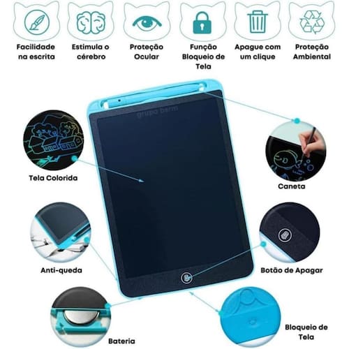 - equipado com botão apagar, a criança poderá limpar a tela com apenas um clique.