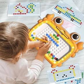 O Quadro Desenho Magnético espacial é super divertido, ele tem imãs coloridos e caneta magnética. Você pode fazer vários desenhos, quando terminar é só virar o quadro para começar novamente! ESPECIFICAÇÕES DO PRODUTO:Conteúdo da embalagem: 01 lousa magnetica, 01 caneta magnética e 10 cartões com 20 desenhos Dimensões da embalagem : 30cm x 24cm x 3cm (LxAxP)Dimensões do produto: 25cm x 20cm LxAMarca: Braskit Código de barras: 7896771601569Modelo: 1506Idade: +4 anos