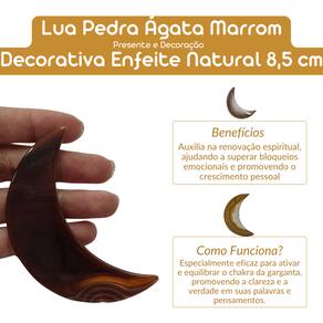 Lua Pedra Ágata Marrom Decorativa Enfeite Natural - 8,5 cm A Lua Pedra Ágata Marrom é um enfeite natural de 8,5 cm que traz elegância e energia protetora para qualquer ambiente. Sua cor marrom transmite estabilidade e equilíbrio, sendo ideal tanto para a decoração quanto para práticas espirituais, como meditação e cura energética. Benefícios: