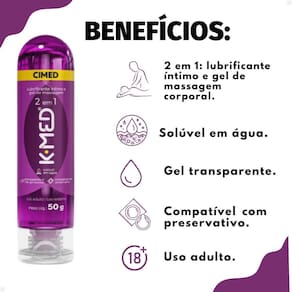 Lubrificante Cimed 2 em 1 50g: Prazer e Cuidado em um Só Produto Formulado 100% à base de água e enriquecido com Vitamina E, ele proporciona uma lubrificação suave e eficaz, sendo totalmente compatível com preservativos.