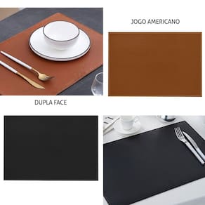 Lugar Americano Dupla Face composto por material semelhante ao couro. Excelente acabamento e super versátil, podendo ser utilizado dos dois lados. Fácil de limpar é ideal para mesa de jantar, ou usar em escritórios como suporte de mesa. A textura do material é o grande diferencial, proporcionando aos ambientes requinte, sofisticação e praticidade. Para manter a durabilidade do produto lavar à mão, não alvejar e não secar em tambor.