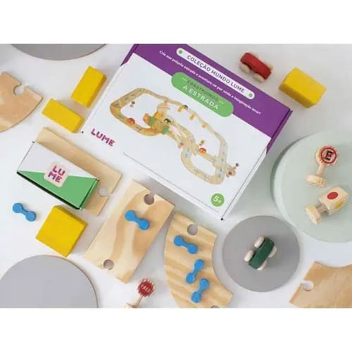 Este brinquedo permite que a criança crie sua própria estrada e aventure-se por onde a imaginação levar! Composto por 2 carrinhos, 2 sinais de trânsito, 1 bomba de abastecimento, 19 peças da estrada, 18 engates e 6 peças de apoio. Com a combinação de peças, é possível construir diferentes rotas e formatos. É uma brincadeira que estimula e desenvolve a imaginação, a criatividade, a percepção espacial, o planejamento e a atenção para o aprendizado dos sinais de trânsito. Este brinquedo faz parte da Coleção Mundo da Lume, podendo ser combinado com outros brinquedos e objetos, criando novos cenários e atividades.