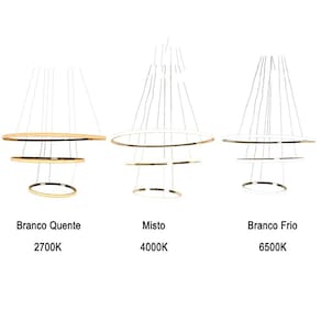 O lustre possui três temperaturas de cor: Branco Frio, Misto e Branco Quente. Para fazer a mudança das temperaturas de cor basta desligar e ligar o interruptor do seu próprio ambiente.