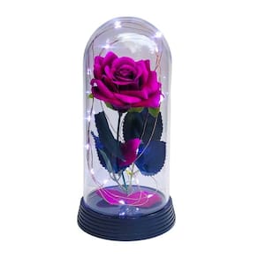 Luminária a rosa encantada roxo 20 cm base preta frio