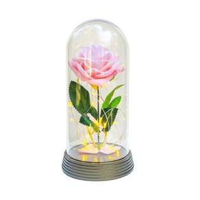-luminária com 10 cm de diâmetro por 20 cm de altura; -cúpula de acrílico translúcido; -base de plástico; -micro luzes de leds, luzes de fadas, branco quente amarelado, vintage , funcionam com pilhas ou baterias já inclusas ; -rosa artificial idêntica a natural e dura mais de 100 anos dentro da cúpula, é eterna ;