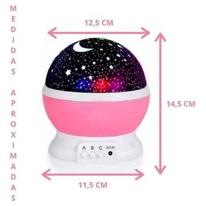 Luminária abajur infantil luz de estrela giratório projetor Cor: rosa Você já olhou para as estrelas e desejou poder engarrafar a galáxia noturna e trazê-lo para dentro da sua casa Bom, agora você pode com o ajuda do projetor de estrelas star master. Você pode criar sua própria mini galáxia nas paredes do seu quarto, da sua sala de estar, festas ou de qualquer lugar que você deseje em apenas alguns segundos.Quando a luminária for conectada via usb, pode se transformar num abajur normal, removendo a tampa estelar FUNÇÕES DOS BOTÕESBotão a - liga e desliga Botão b - troca cores de luz Botão c - efeito giratórioTampa semi-transparente podendo usar a luminária com ou sem a tampa, fazendo o céu estrelado ou apenas usando como luminária. Tamanho: 10.8 x 9.5 x 9.5 centímetrosConsideraçõesA função liga/desliga do botão a só funciona quando a cor da luz estiver na luz branca. Para projeção nas paredes é necessário remover o domo de plástico rígido translúcido. Sua função giratória é controlada por um dos botões, porém o domo estrelado preto é fixo.ESPECIFICAÇÕES DO PRODUTOProduto: projetor de luz giratória Material: plástico absTamanho: 10.8 x 9.5 x 9.5 centímetros Tensão: dc5v Alimentação: 150 ma Fonte de energia: 4x aaa palito (não incluso) ou cabo usb (incluso)Itens inclusos01 luminária projetor estrela 360º01 cabo usb Marca: Wstore Brasil Abajur