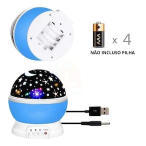 Luminária abajur infantil luz de estrela giratório projetor Cor: azul