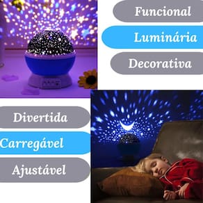 Luminária abajur infantil projetor de estrela