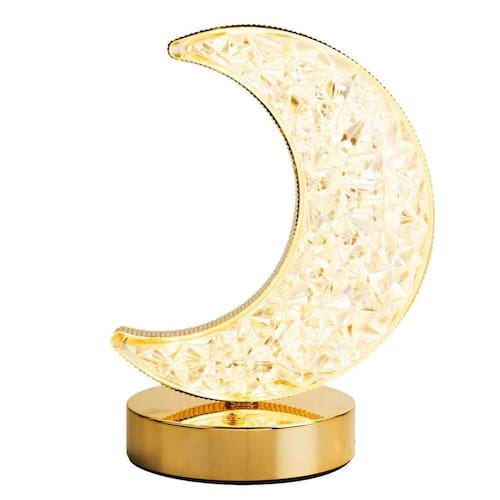 Luminária de LED no formato de uma lua com 18,5 cm de altura. No primeiro toque, acende uma luz branca, toque novamente, a luz se torna amarela e com um último toque uma luz suave se acende. Funcionamento: cabo USB; Material: plástico; Lâmpadas não trocáveis Marca: Não Informado Ean: 4894290296634