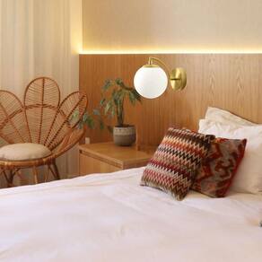 A arandela jabuticaba leva esse nome, pois seu design foi inspirado na beleza orgânica das árvores Jabuticabeiras do Brasil. Seus frutos, as jabuticabas, expressadas pelo globo de vidro, funde a arte com natureza, e, sua expressão, em forma de luminária. Cria-se assim, uma peça sofisticada, delicada e funcional para iluminar ambientes. Une beleza e funcionalidade.
