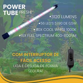 • Modelo: Artika Fresh Water • Potência: 36w • Canais: 4 Cool White (Branco) 10.000 k, 4 x Warm White (Branco Quente) 6500K, 2 x Green (Verde) 520nm, 2 x Red (Vermelho) 660nm • Quantidade de LEDs: 12 • Medidas da Luminária (CxLxA) - 22 x 11 x 3 • Tipo de Água: Doce • Lúmens: 1410 • Voltagem: Bivolt • Cabo de Energia Total: 2,1m • Cabo de Energia da Fonte até a Tomada: 0,8m / 80cm • Peso: 700g • Material do Suporte: Metal Esmaltado • Tamanho Máximo do Aquário: 50cm de Comprimento