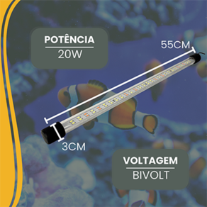 • Possui diferentes espectros de luz, que podem ser ajustados de acordo com as necessidades do aquário. • Personalização na iluminação de seus aquários para melhor atender às necessidades de seus animais e plantas • Destaca a beleza e as cores vibrantes dos animais e da decoração do aquário. • Ajusta a altura de acordo com o tamanho do seu aquário.