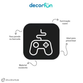 Perfeita para sua decoração, a Luminária Box Controle Gamer Light, vai encantar seu quarto, aquele seu cantinho especial ou o ;seu escritório. Essa luminária vai agregar no seu espaço de leitura por ser uma luz difusa, o que não agride a visão, além de deixar o local com uma iluminação mais baixa. Sendo bivolt com a Luminária Box Controle Gamer Light, você não precisa se preocupar com nada, basta ligar na tomada e ligar.