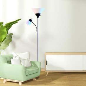 soquete: e-27. Potência: 60 watts em cada soquete. Voltagem: suporta lâmpadas 110v e 220v. Se colocar lâmpada 110v, ligue em tomada 110v. Se usar lâmpada 220v, conecte em tomadas 220v. Cúpula superior: 25cm de diâmetro x 15,5cm de altura, material em pp. Cúpula articulada: 15cm, regulável e flexível, material em pp. Haste: altura de 1,6m, material em metal total de 5 hastes que são interligadas . Base: 22cm de diâmetro x 4cm de altura, de peso sólido e cobertura em abs. Altura total: 1,80m aproximadamente. Medidas caixa individual: 27,5cm x 14cm x 36cm. Peso caixa individual: 3,7kg. Garantia: 3 meses. Todos produtos acompanham.