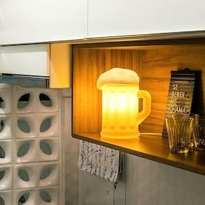 Super criativa, a Luminária Chopp Beer Mug dá a impressão que o chopp não acaba nunca, está sempre transbordando.