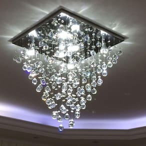A Luz Decor e Lustres, fabricantes de lustres de cristais, acrílicos, tem como objetivo garantir produtos de qualidade com preços competitivos no mercado de Lustres, Pendentes e Luminárias.DESCRIÇÃO DO PRODUTO* Lustre Com 100 cristais k9 legítimos de 30mm.* Modelo: Chuva De Cristais* Altura: 50Cm até 70CM* Base de inox espelhado de 45X45cm com acabamento a laser.* Castanhas de cristal de 14mm.* Modelo para 05 Lâmpadas GU10 (Lâmpadas não inclusas )* Direto da fábrica para seu ambiente