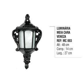 Luminária Colonial Meia Cara Veneza em Alumínio e Vidro