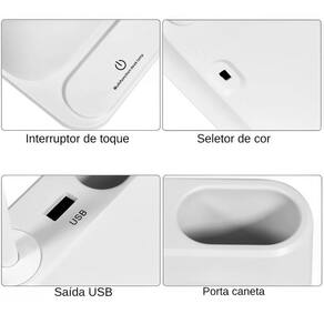 Luminária Com Entrada USB Articulável 360 Cor RosaPerfeito para sua mesa de trabalho! Com hastes de 360o, recarregue seu celular e possui modos de luz branca e fria, além do controle de brilho.Seja mais produtivo com essa luminária inovadora que também serve como organizador de canetas e adaptador para ventilador portátil.Suas atividades nunca foram tão bem iluminadas e organizadas!Adquira já essa solução versátil e funcional para o seu dia a dia.ESPECIFICAÇÕES:Peso: 300gSaída USB: 5VFonte de luz: LEDBateria: 1200mAHMaterial: ABS Alta qualidade e dobrávelTemperatura da luz quente: 2800-3200kTemperatura da luz branca: 6500-8500kCORES DISPONÍVEIS:RosaITENS INCLUSOS: - 01 Luminária Carregar Celular Powerbank USB;01 Cabo USB para recarregar