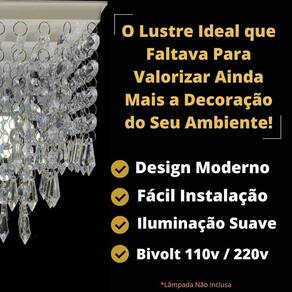 Altura do Lustre 21 cm. Voltagem: Bivolt 127v 220v Lustre enviado montado pronto para instalação. Lâmpada não inclusa. Pingentes de Acrílico Medidas do Produto: 19cm x 19cm x 21cm Peso: 600 gramas Marca: Não Informado